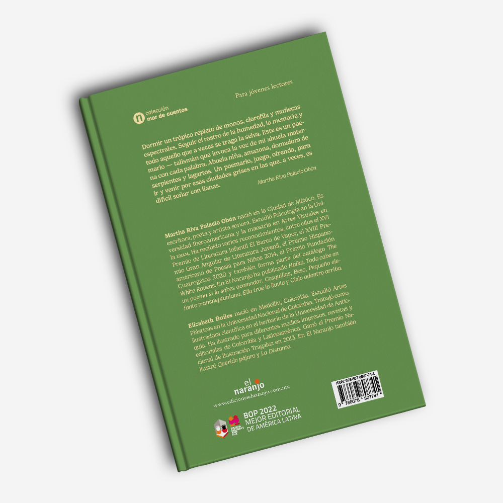 Un poemario-talismán, una puerta abierta a la selva donde la memoria se enreda en lianas y los sueños toman forma de monos traviesos, muñecas espectrales y susurros de clorofila. A través de versos que resuenan con la voz ancestral de su abuela amazona, Martha Riva Palacio Obón nos ofrece una ofrenda poética, un juego de palabras que nos permite habitar dos mundos: la selva indómita y las ciudades grises donde, a veces, olvidamos cómo soñar.